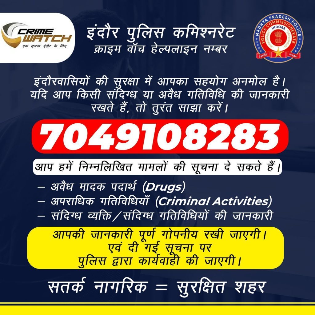 इंदौर – शहर में सुगम सुरक्षित व सुखद यातायात हेतु पुलिस कमिश्नर इंदौर के दिशा निर्देशन में पुलिस द्वारा लगातार यातायात प्रबंधन का कार्य एवं नियमो का उल्लंघन करने वाले वाहन चालकों के विरुद्ध चालानी कार्यवाही भी की जा रही है।