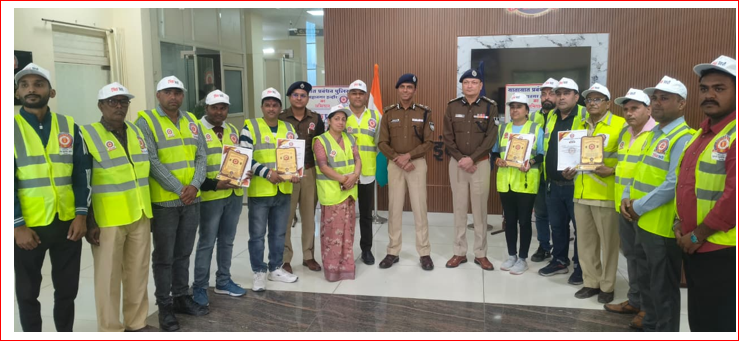 पुलिस कमिश्नर इंदौर द्वारा “ट्रैफिक प्रहरी” अभियान से जुड़कर सराहनीय कार्य करने वाले 04 ट्रैफिक प्रहरियों को किया सम्मानित ।