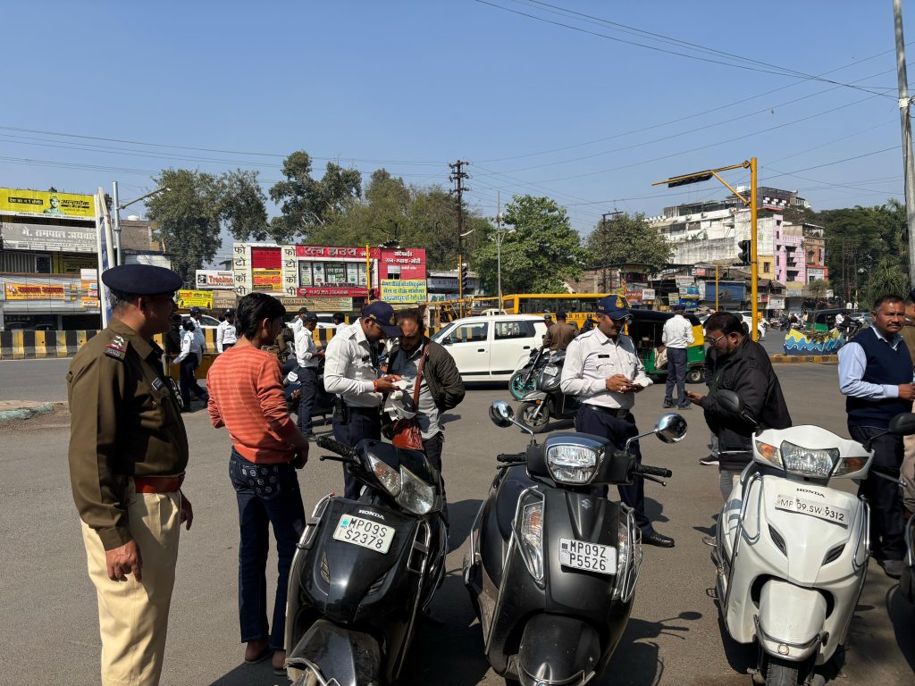 पुलिस कमिशनर, नगरीय इन्दौर ने हेलमेट जागरूकता अभियान में, वाहन चालकों को सुरक्षित यातायात के लिए, की नियमों का पालन करने की अपील।