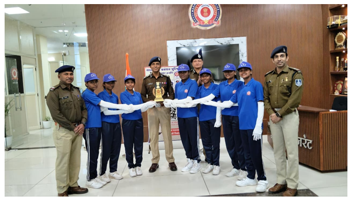 गणतंत्र दिवस के कार्यक्रम में, पुलिस की विभिन्न टुकड़ियों के साथ SPC व सृजन बालिकाओं ने भी की कदमताल।