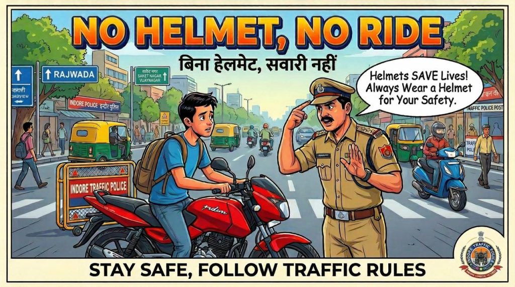 इंदौर पुलिस कमिश्नरेट द्वारा “हेलमेट पहनें-सुरक्षित रहें अभियान” के तहत जन जागरूकता के निरंतर प्रयास जारी…।