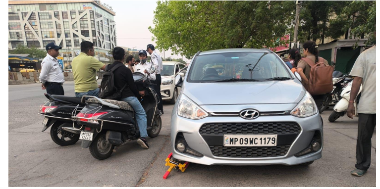 इंदौर पुलिस के “हेलमेट पहनें-सुरक्षित रहें” अभियान के तहत जन-जागरूकता के साथ ही नियमों के उल्लंघन पर कार्यवाही।