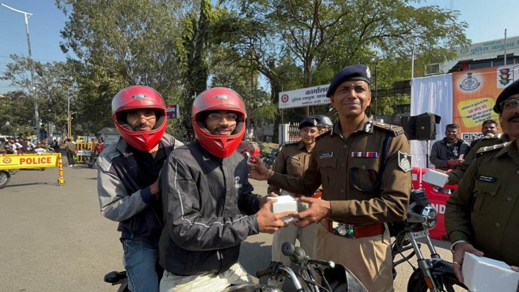 पुलिस कमिश्नर ने सड़क सुरक्षा का महत्व समझाते हुए, किया वाहन चालकों को हमेशा हेलमेट पहनने के लिए प्रेरित ।