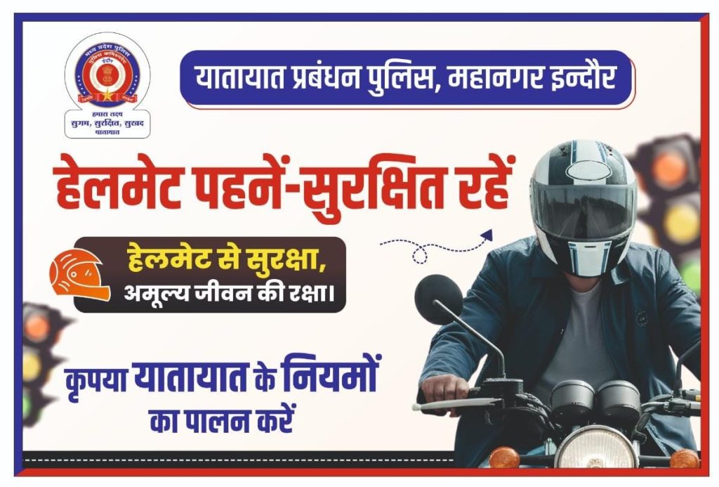 इंदौर ट्रैफिक पुलिस द्वारा हेलमेट के प्रति जागरूकता के साथ कार्यवाही का अभियान लगातार जारी….बिना हेलमेट वाहन चलाने वाले 558 वाहन चालकों पर की चालानी कार्यवाही।