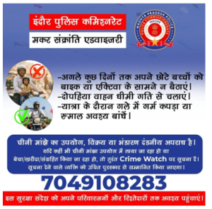 इंदौर पुलिस कमिश्नरेट द्वारा चाइनीज/प्रतिबंधित मांझे के प्रति जन जागरूकता हेतु किए जा रहे है नितें नए प्रयास