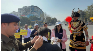 यातायात पुलिस इंदौर द्वारा मकर संक्रांति पर हेलमेट व चाइनीज मांझे को लेकर विशेष जागरूकता अभियान